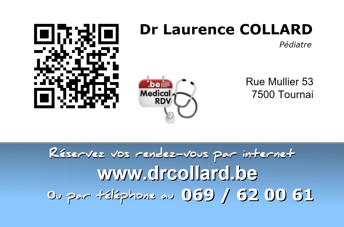 Bienvenu sur le site de prise de RDV du Docteur Laurence COLLARD, Pédiatre à Tournai